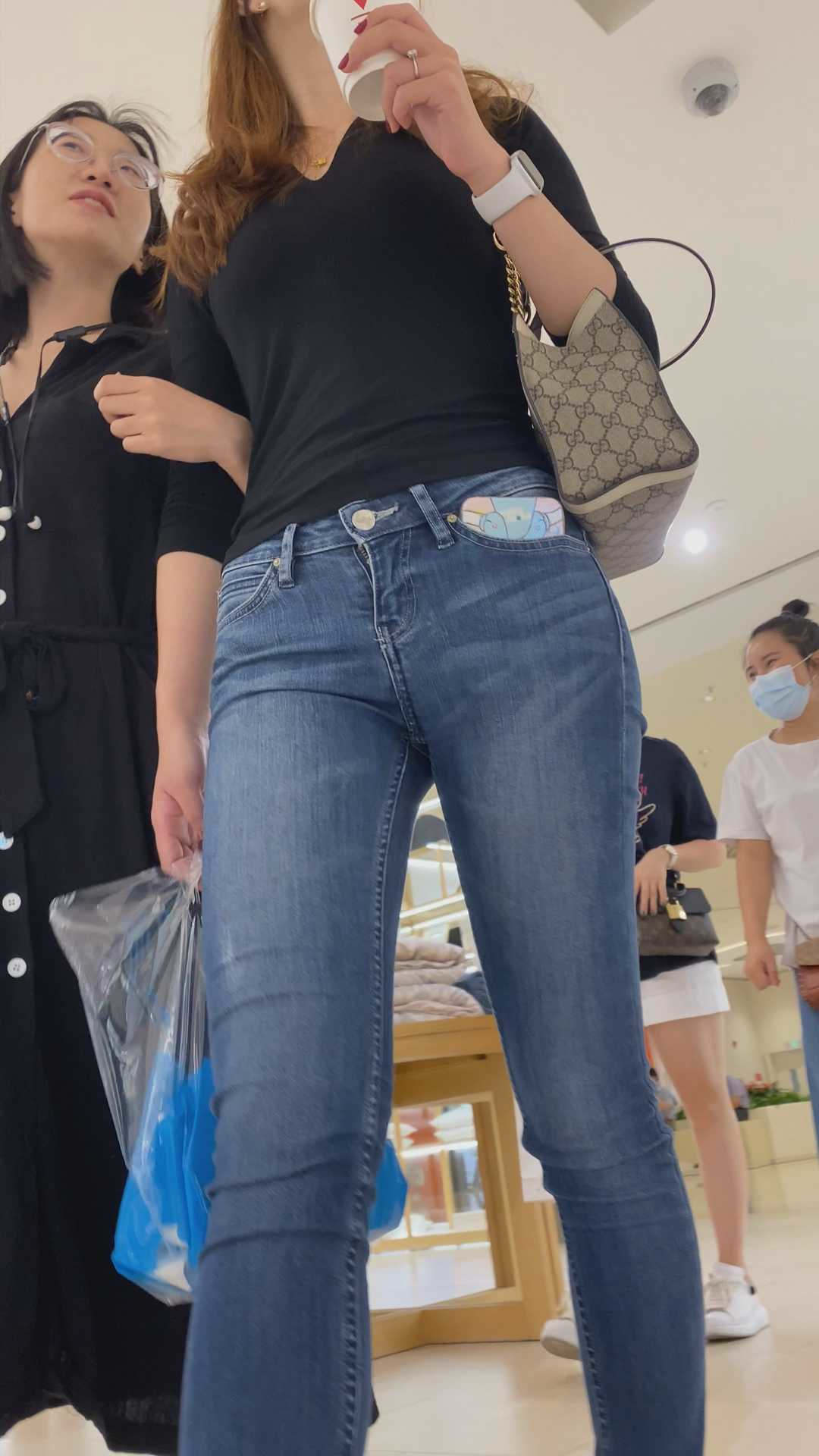 B904紧身牛仔超深沟无底洞美女 |