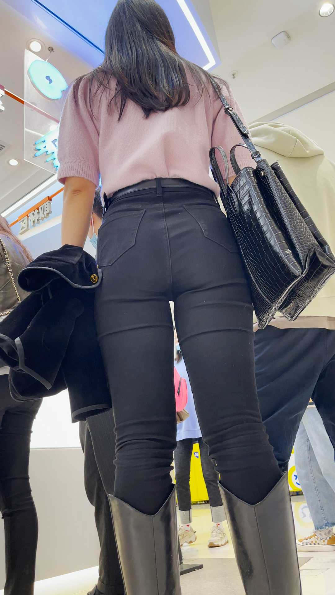 B910身材丰满翘臀黑裤美女和男友买奶茶 |
