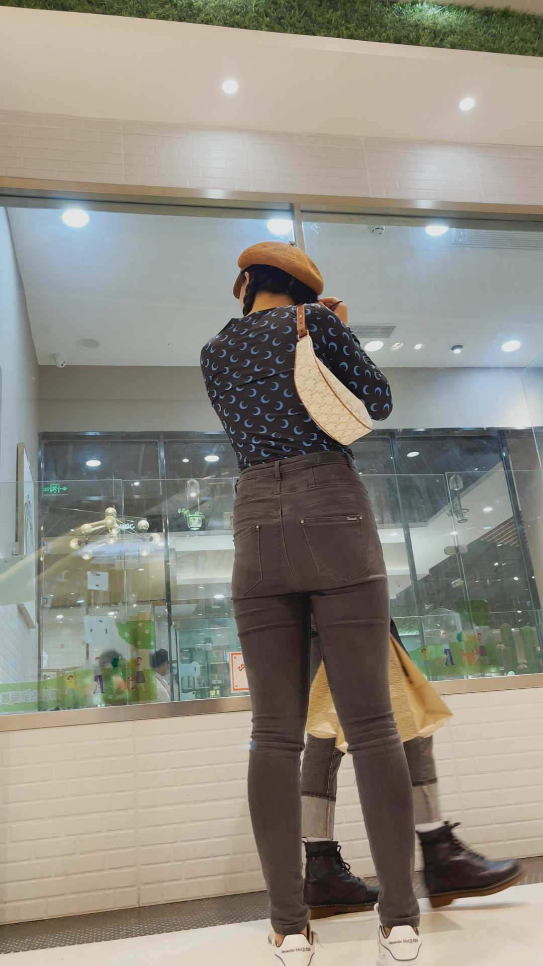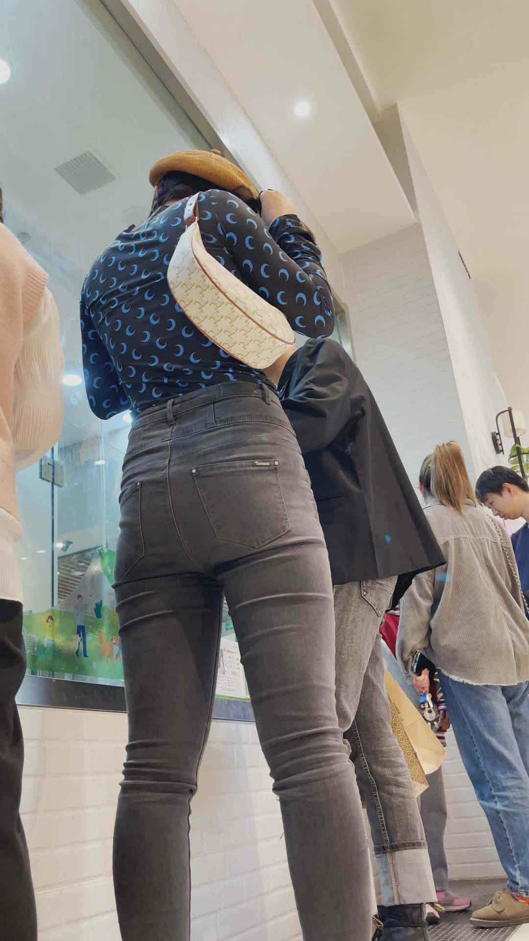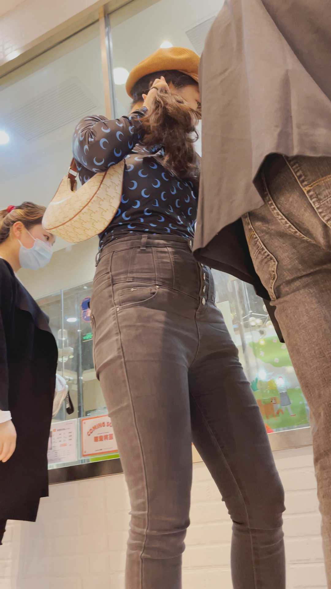B980商场紧身灰牛仔金三角妹子 |
