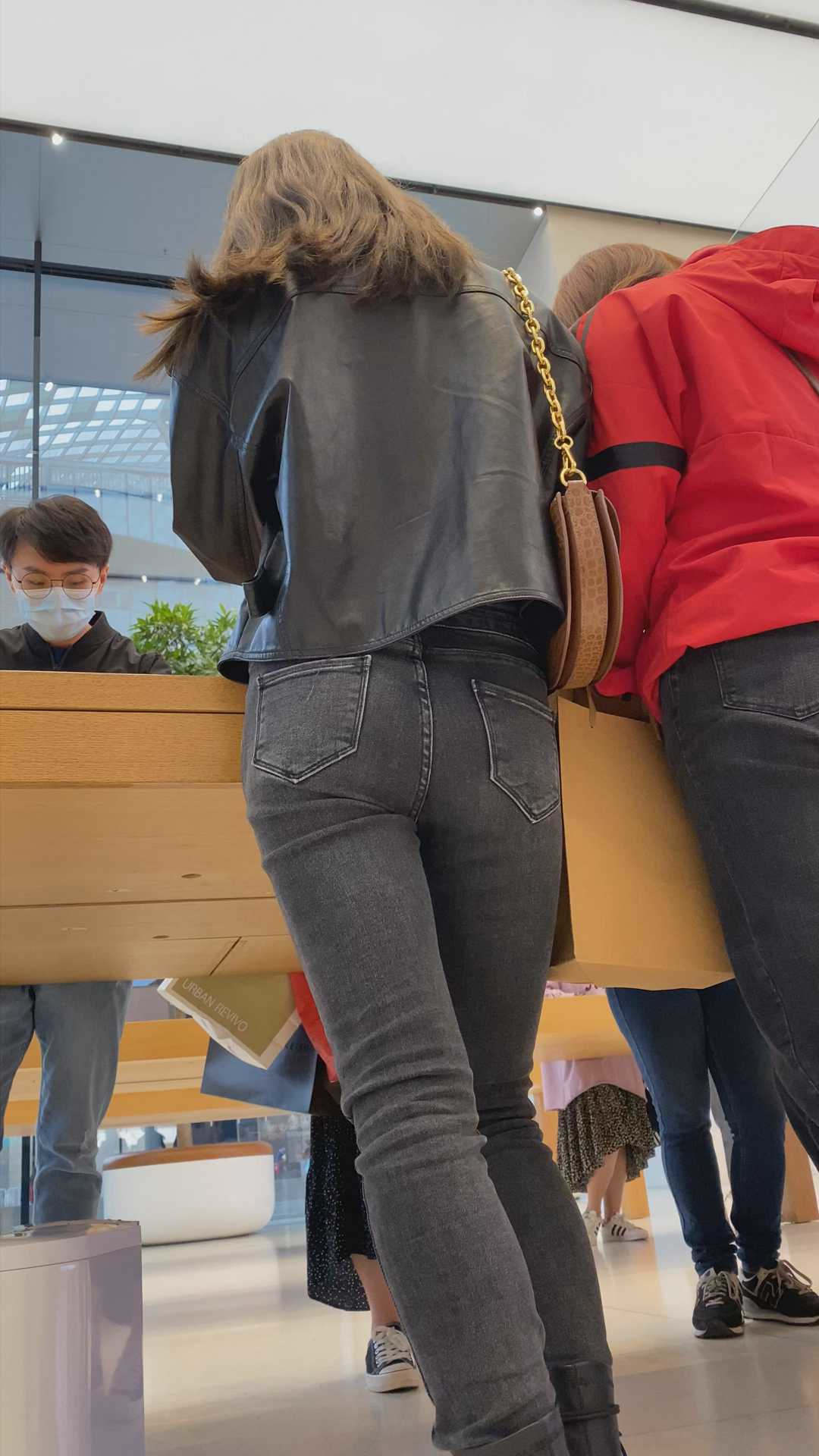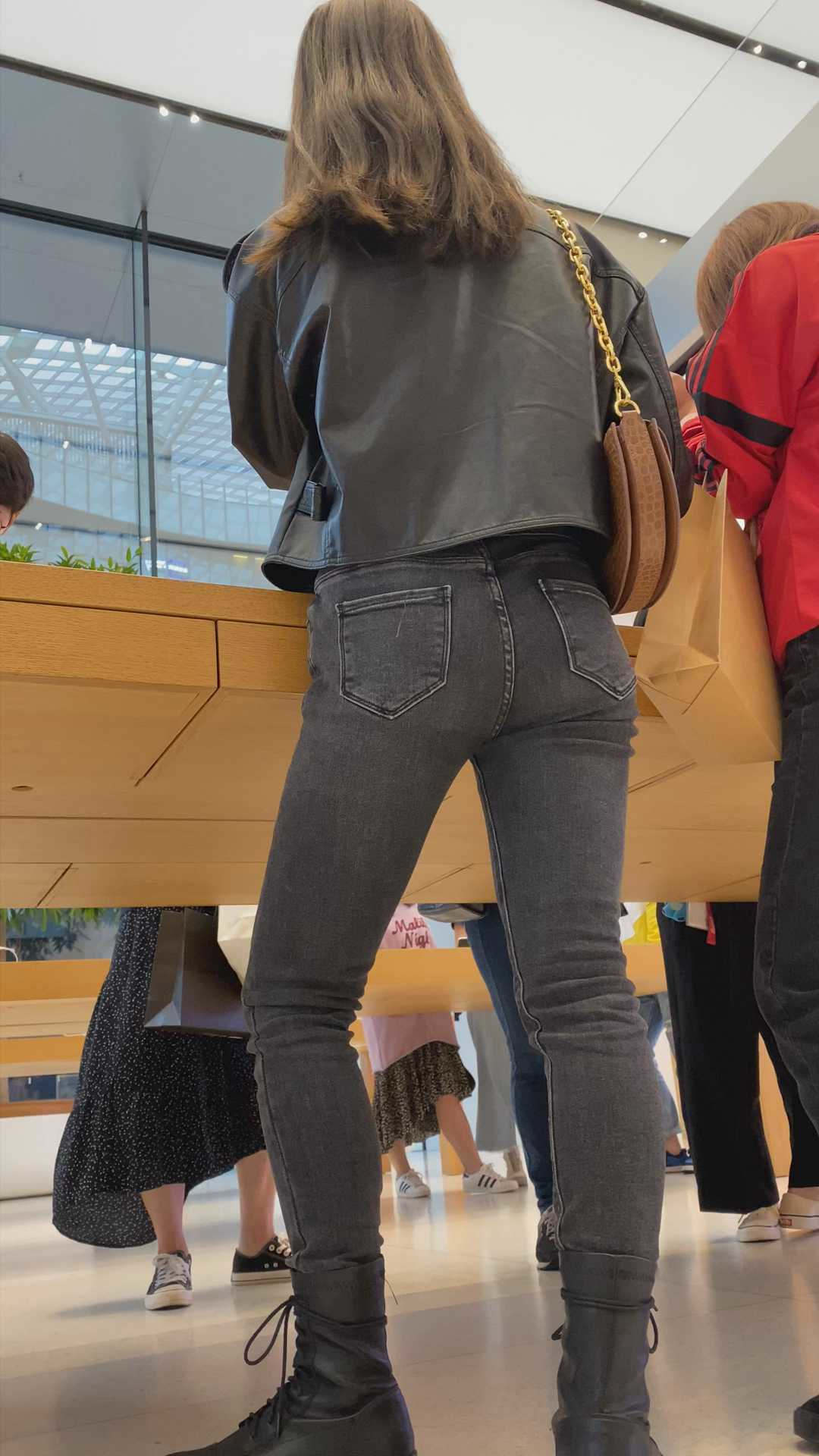B1249紧身包臀灰牛仔裤美臀特写 |