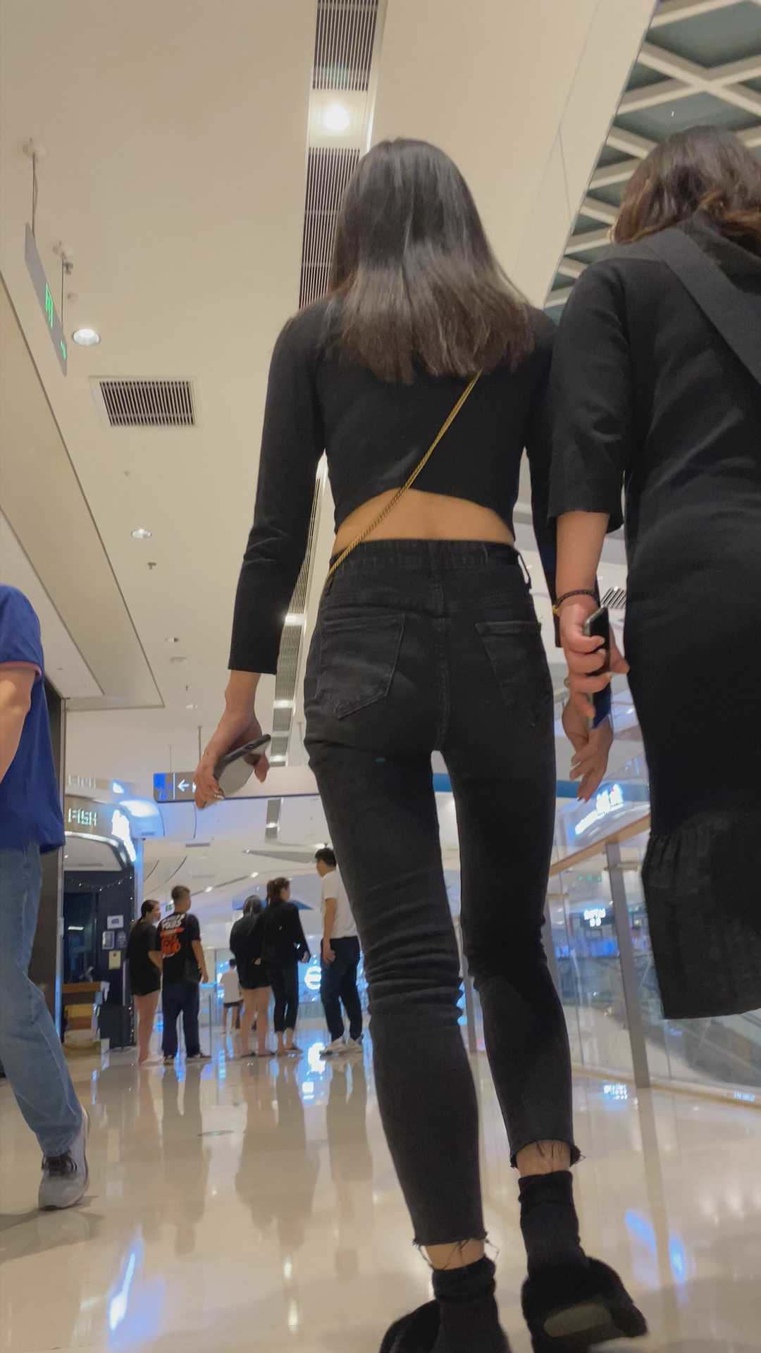 B1466黑牛仔妹子身材已经严重变形 |