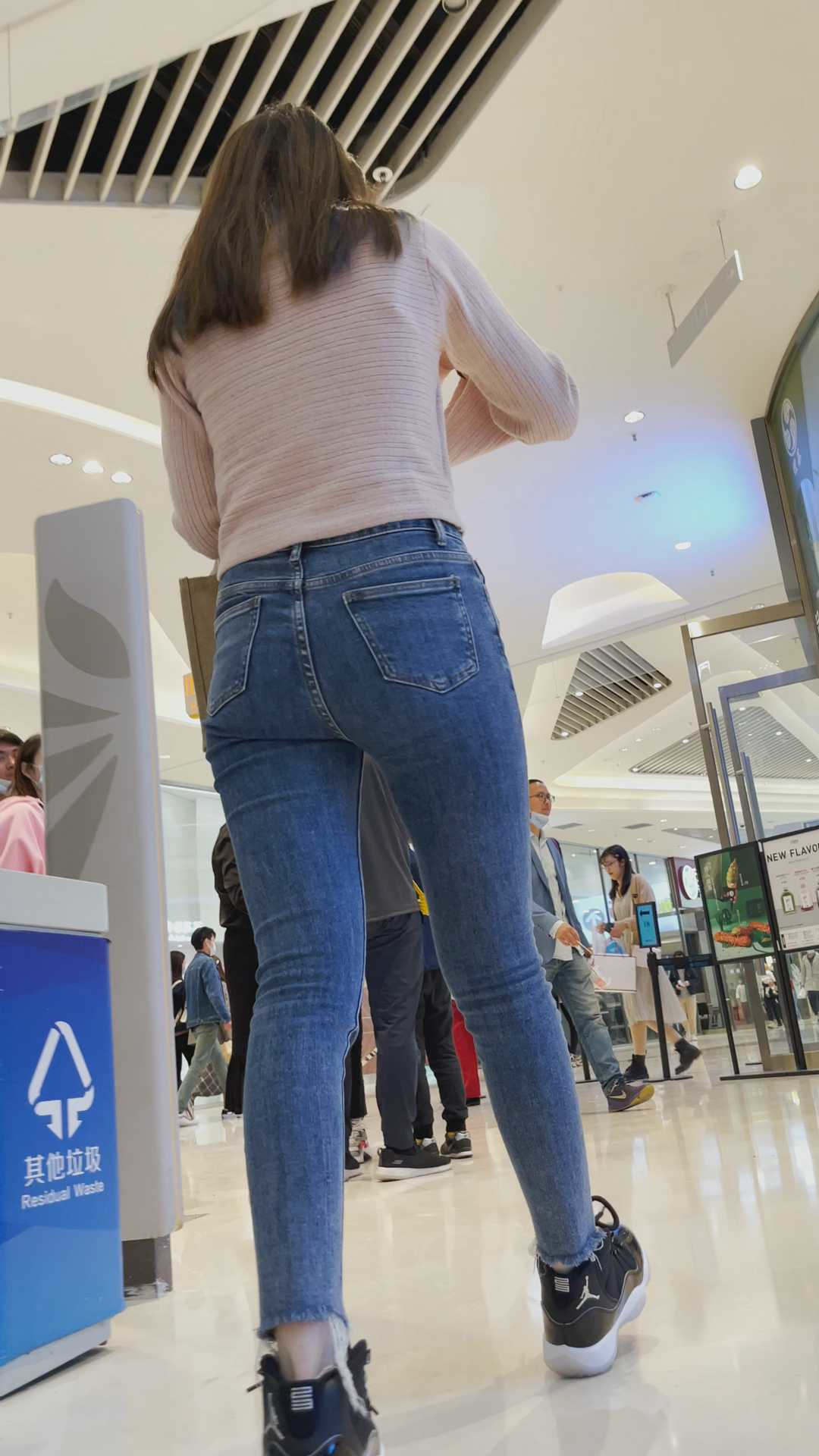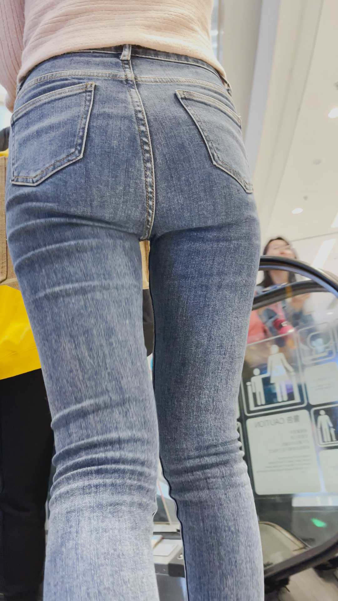 B2牛仔裤女和男友分开逛商场,要的就是这样的效果 |