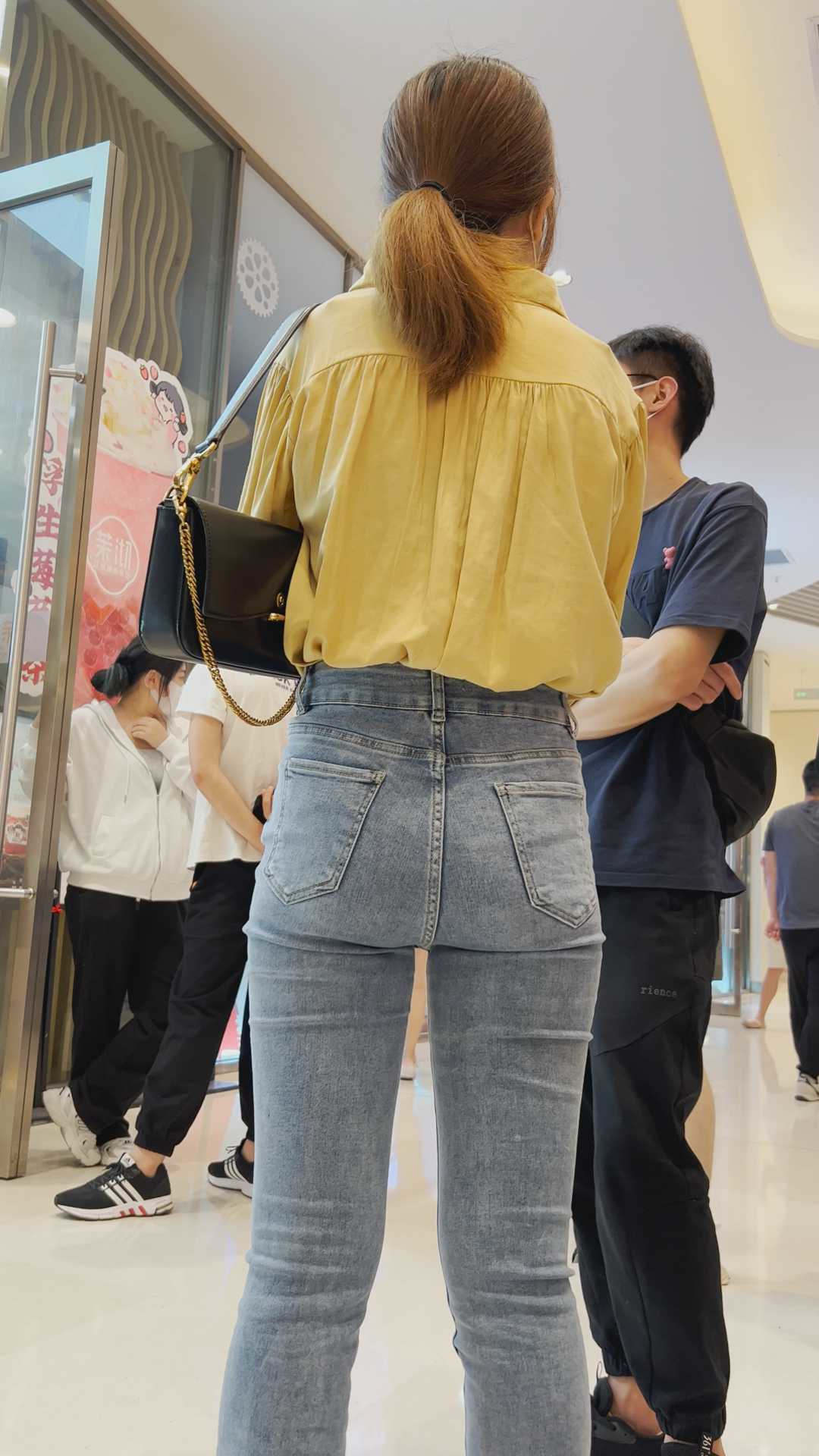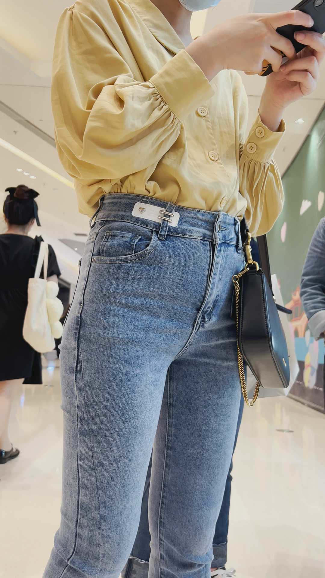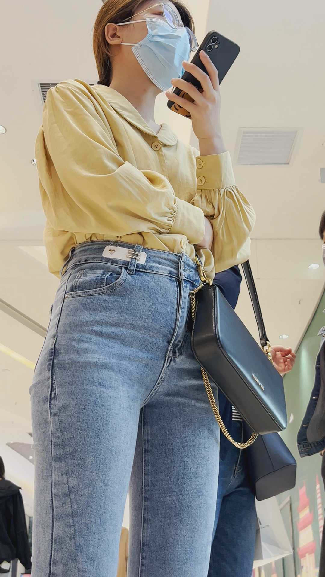 B293性感牛仔紧臀金三角眼镜妹 |