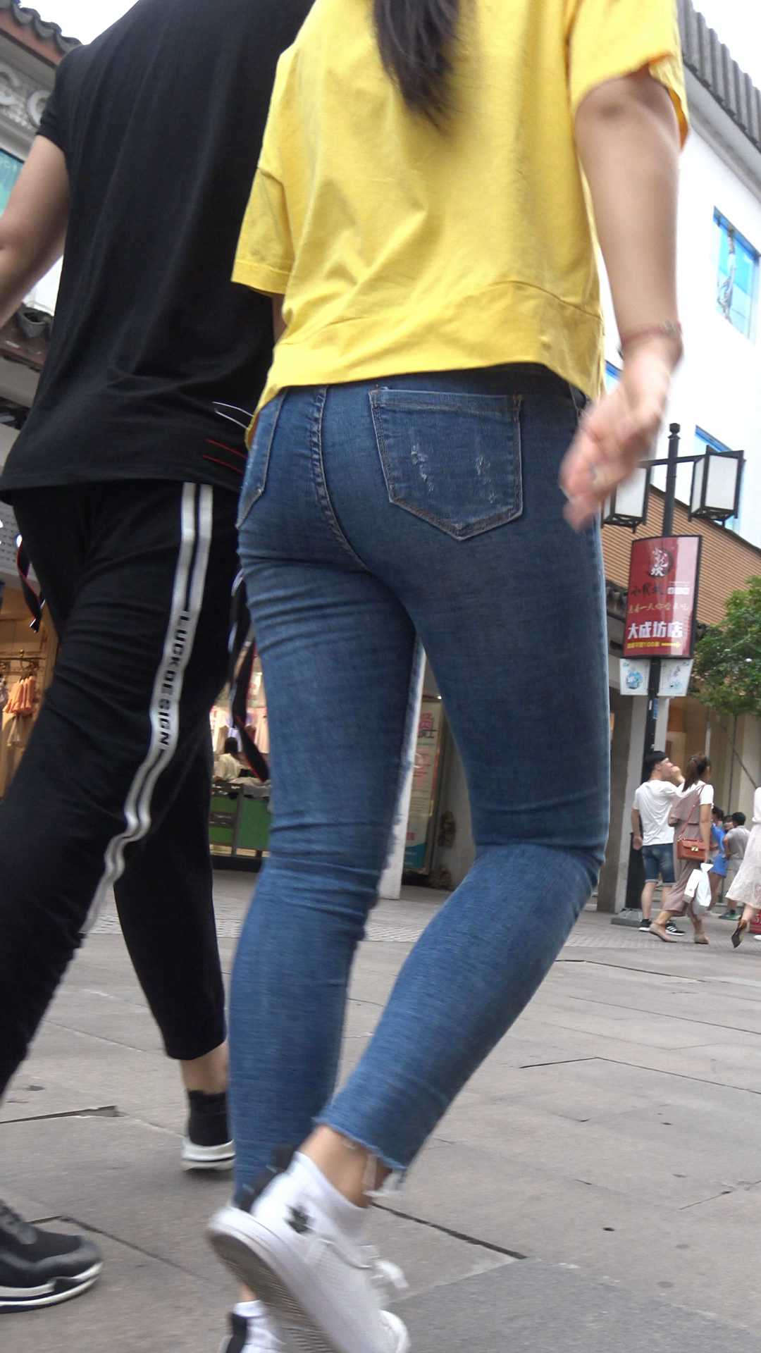 C596就算是工作日,购物街也能遇到牛仔紧身裤 |