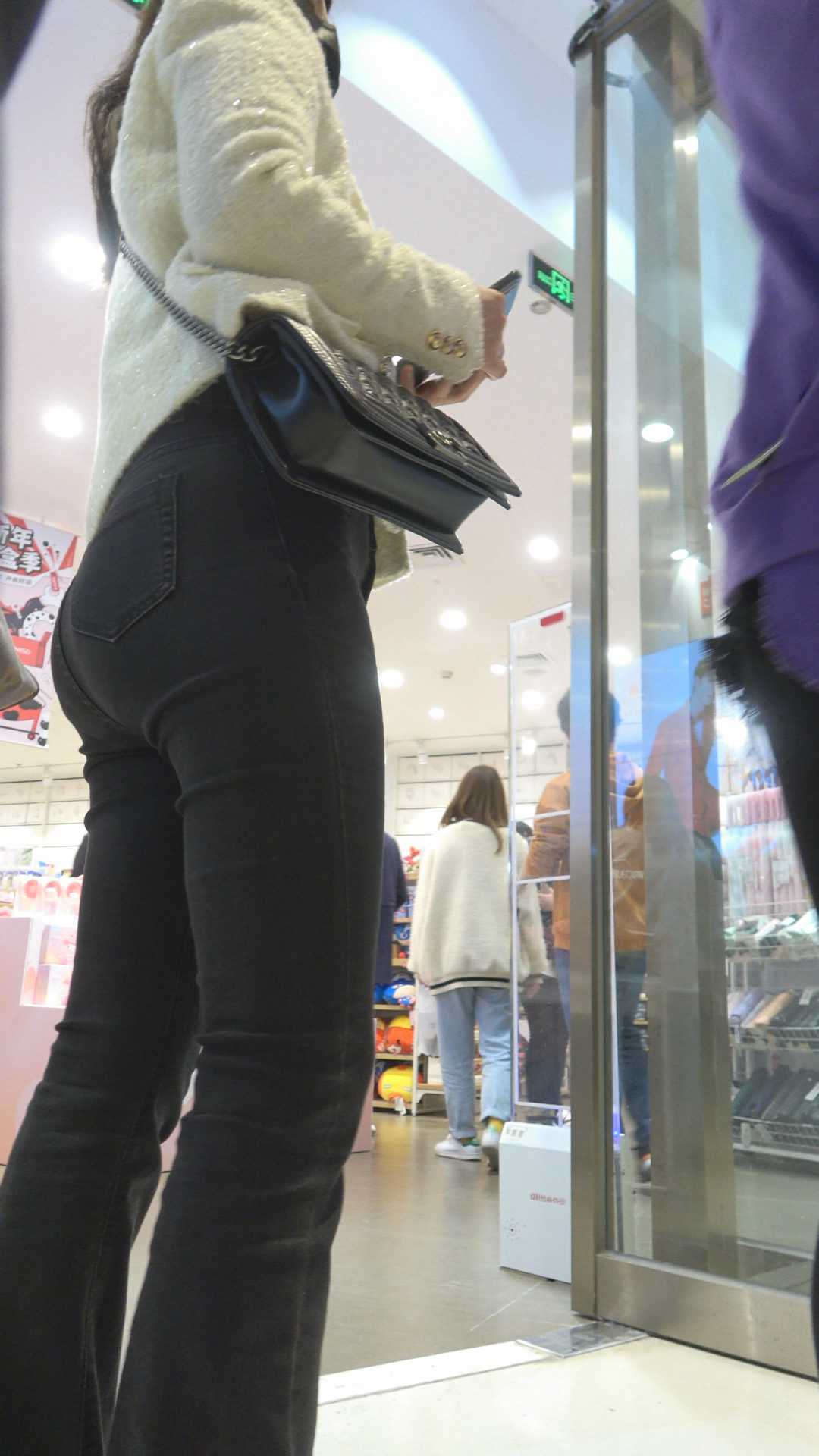 C322饱满圆润黑牛仔喇叭裤妹子 |